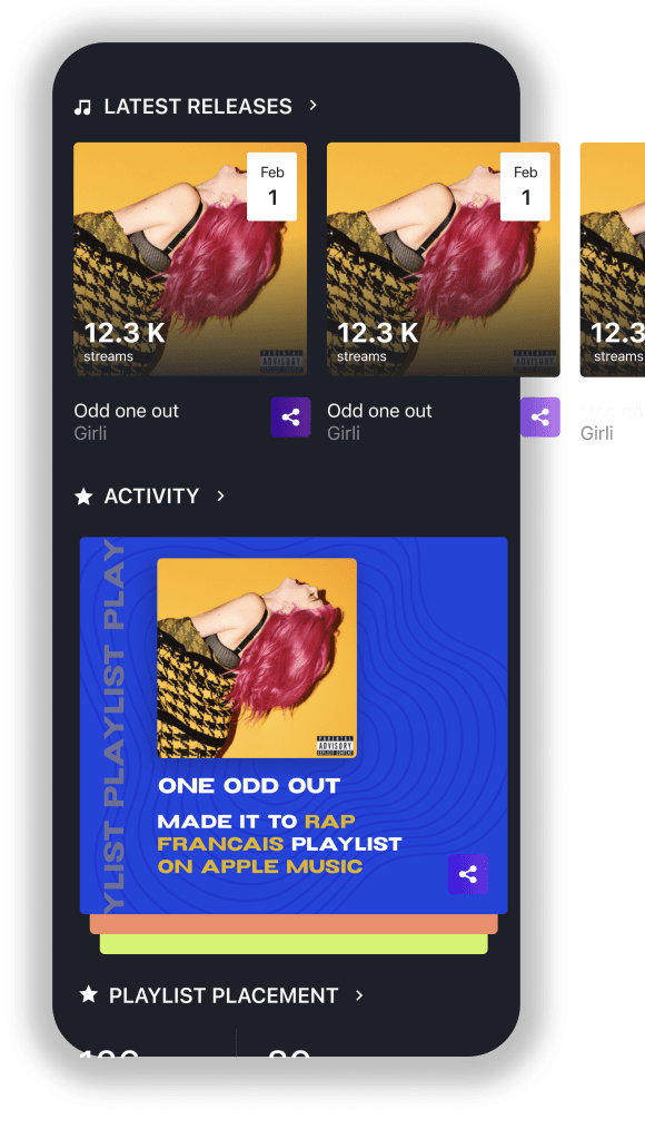 The main purpose of this app is to help artists consult their streaming datas without using the web SaaS (which is complicated and not designed for them but for their professional teams).